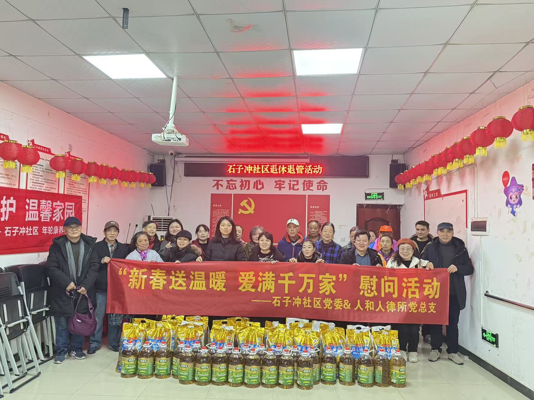 人和人湘潭分所开展新春走访慰问活动从2022年1月23日开始,人和人湘潭分所主任晏军、党支部书记许伟分别带领律师前往乡镇、社区慰问基层困难群众,为他们送去米、油、春联等慰问物资,向他们送上新春祝福和关怀。